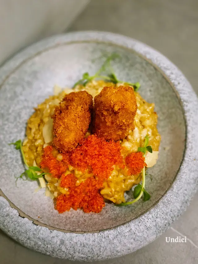 滿有驚喜的廚師發辦,超多蟹子。吉列廣島蠔又炸得鬆脆,咖喱帶甜味,配上意大利飯好有口味👍。
