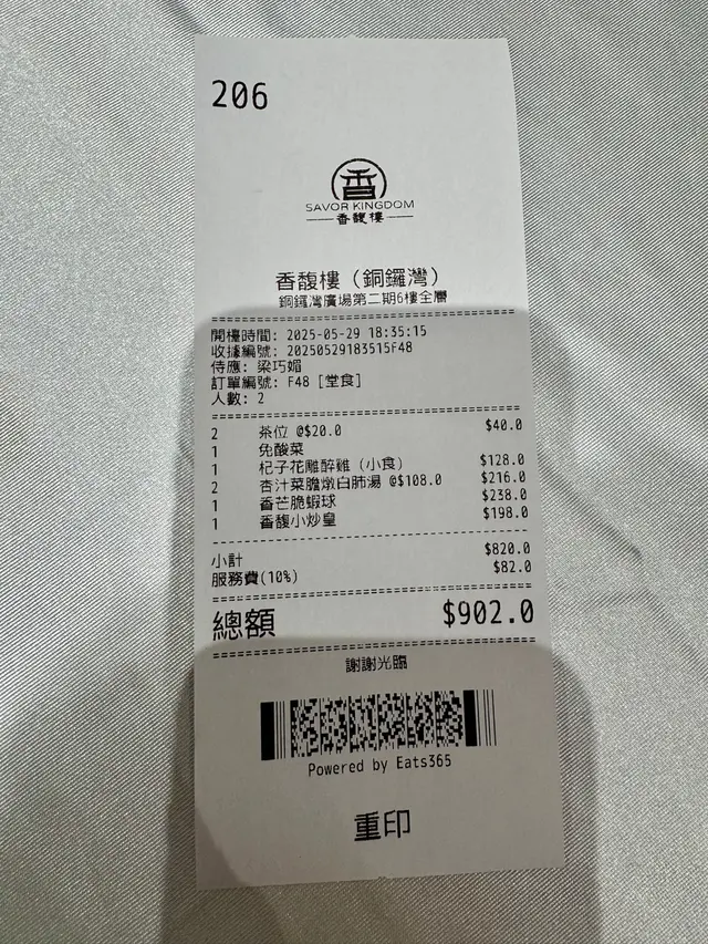 餐廳嘅服務都好貼心,每道菜上枱時都會用熱座保溫,啲菜一直都保持熱辣辣,食到最後都唔會凍晒,呢個細節真係好加分。整體嚟講,今晚嘅晚餐真係好有驚喜,啲菜式雖然唔係話好誇張,但每一款都好用心,味道同擺盤都好有水準。喺銅鑼灣咁繁忙嘅地方,搵到咁一間安靜又精緻嘅中菜館,感覺真係好唔錯。