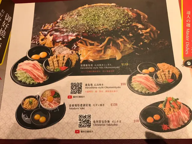 有鐵板燒、夜未燒、所好燒、大阪燒好多款選擇