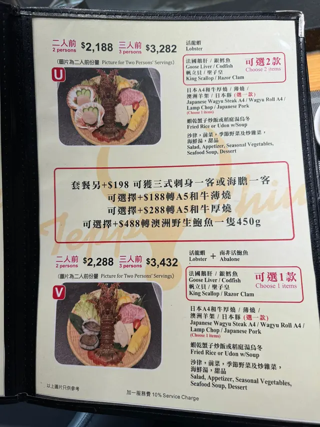食物超新鮮,我點咗龍蝦、鮑魚、鵝肝&和牛