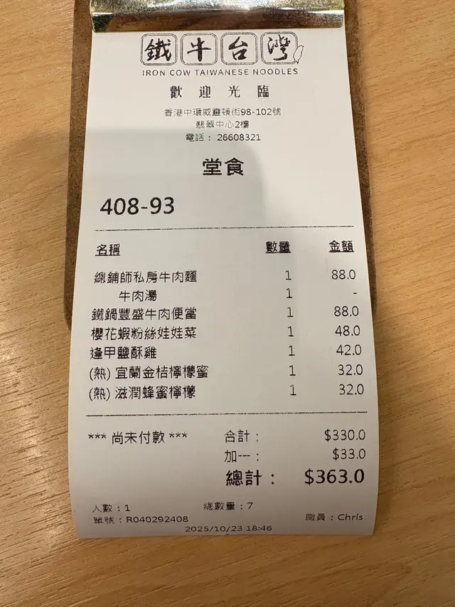 總括而言,鐵牛台灣牛肉面嘅價錢超合理,招牌菜式每一樣都好有特色,令我地好似置身台灣街頭一樣,重拾返係台灣旅行既美好回憶。🤤