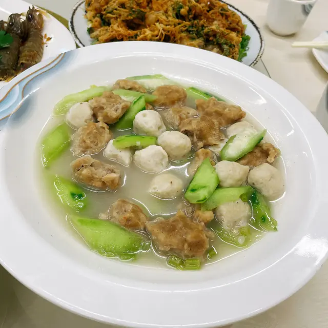 香港少見嘅海豐做法,沙錐魚+黃腳鱲+烏頭滾成奶白湯底,仲落咗酸梅同普寧豆醬 🐟。魚肉嫩到夾起會散,湯汁撈飯仲正過主角,我哋追加咗兩碗白飯!