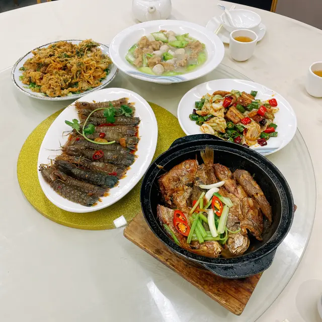 一踏入港泰,撲面係熱鬧嘅大排檔氣氛 🏮,燈光黃黃哋夠晒光猛,枱與枱之間唔會逼到貼地,傾計唔使扯住喉嚨講。牆上貼住手寫海鮮價目表,伙記手腳爽快,未坐定已經遞上熱茶同啤酒杯 🍺。我哋四個麻甩佬揀咗角落卡位,冷氣夠猛又唔會油煙攻心,最正係上菜速度夠快,啱晒我哋一路隊酒一路吹水嘅節奏 👬👬。