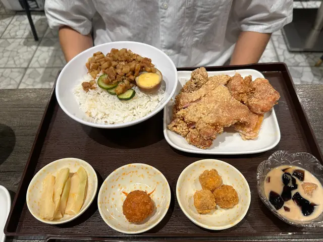 🍱 大大雞排滷肉飯全日套餐(配南投雲筍+炸花枝丸+雞米花+仙草芋圓+熱蜂蜜綠茶)
