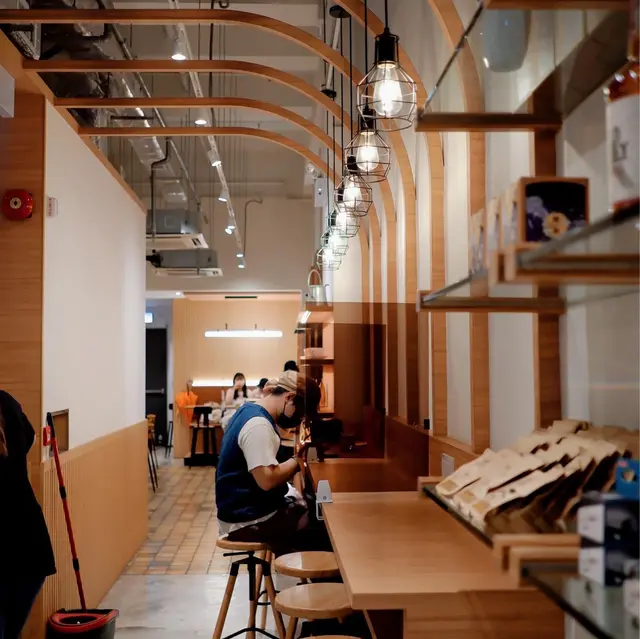餐廳內部樓底高,空間感十足,裝潢較簡約,以淺木色傢俬為主,加上暖色系燈光,令人感覺溫暖柔和🥰門口隔離嘅戶外外位置可以比客人打卡或者帶寵物嚟坐🐶店鋪主要提供咖啡,𝙱𝚊𝚐𝚎𝚕同卷蛋,同時有出售咖啡豆,酒同埋菲林🎞️