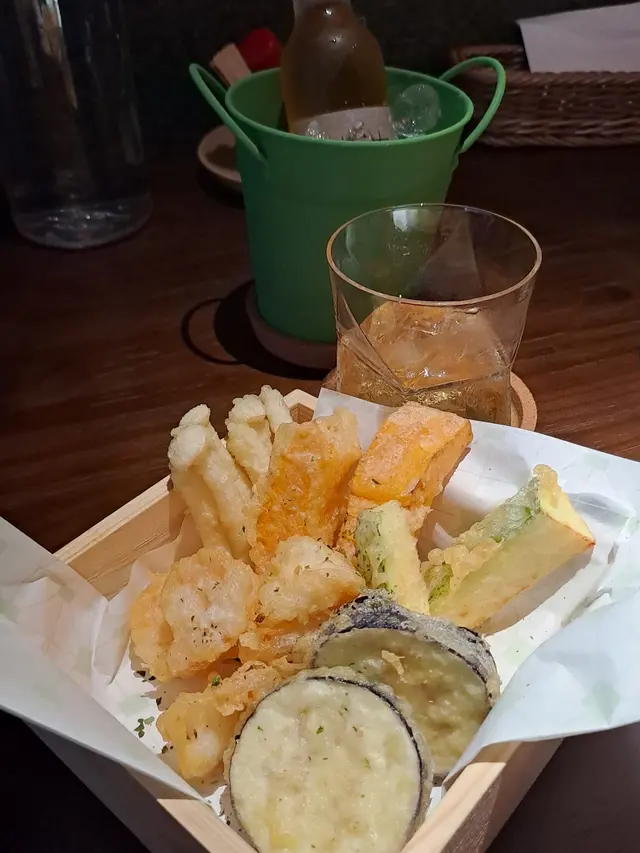 陸續吃了兩款炸物, 有炸雞 (配上甜辣醬) 和雜錦天婦羅. 炸雞炸得外脆內軟, 有六件每人兩件不用爭