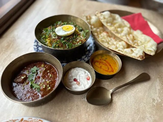 撕下一塊熱騰騰的囊餅,先單吃感受麵香,再舀起沾滿咖哩的香料飯,最後配上一塊多汁的炭烤雞肉,還能蘸清新解膩的薄荷酸奶醬或綿密濃郁的咖哩醬,多種口感在口中交融,超正!