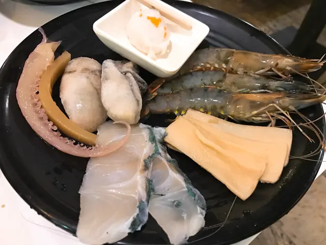 海蝦,廣島蠔,鮑片,魚片,魷魚,墨魚滑