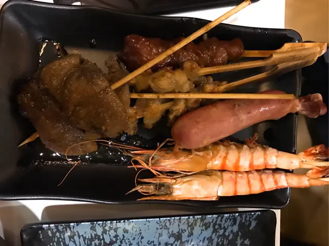 芝麻雞翼,牛舌,海蝦,雞軟骨,雞骨腸