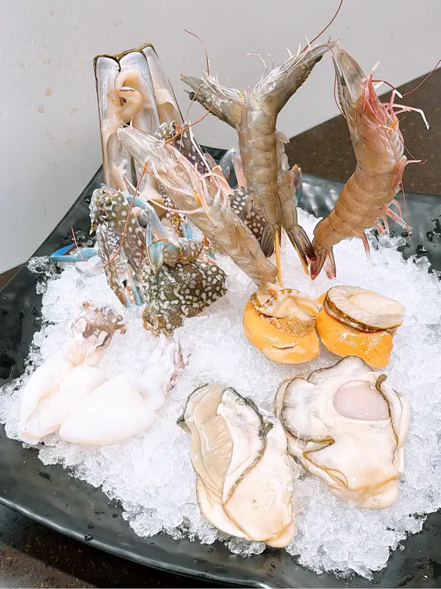 一坐低,嗌份雞煲,之後餐廳就送上每人一份炆鮑魚西蘭花。鮑魚炆得入味,彈牙爽口;之後就到刺身拼盤,有三文魚、帶子、蝦同赤貝,新鮮厚切,好滿足!而海鮮拼盤都唔少嘢,有蟶子、生蠔、鮮蝦、蟹、墨魚,全部都好新鮮。