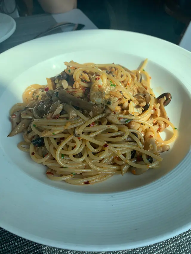 意粉有spicy 味道,我們也發現入面是滿滿的蜆肉和野菌