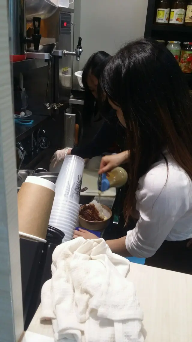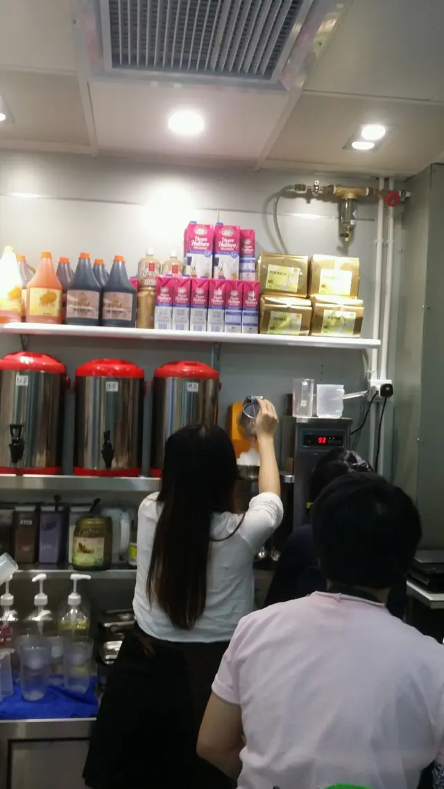 「瀧茶」的廚房裡面不單止面積細小,甚至用來製作台灣手調飲品的原材料瓶,都比坊間很多外賣台灣手調飲品店都細小得很多。我在飲完黑糖珍珠鮮奶後,再購買一款刨冰,再次看見店員在狹窄廚房內埋首工作的苦況。