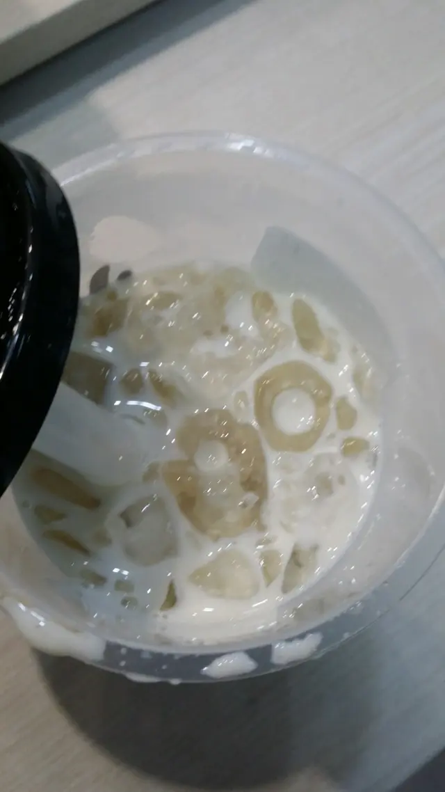 不過有嘗試過不等於一定會成功,流在「瀧茶」「招牌瀧珠鮮奶」外賣膠杯杯壁上面的黑糖糖漿也不例外,因為「瀧茶」勉強成功拉出流蘇拉花花紋,可惜黑糖拉花的花紋實際效果不太明顯,只看見黑色濛瀧一片印在杯壁上。