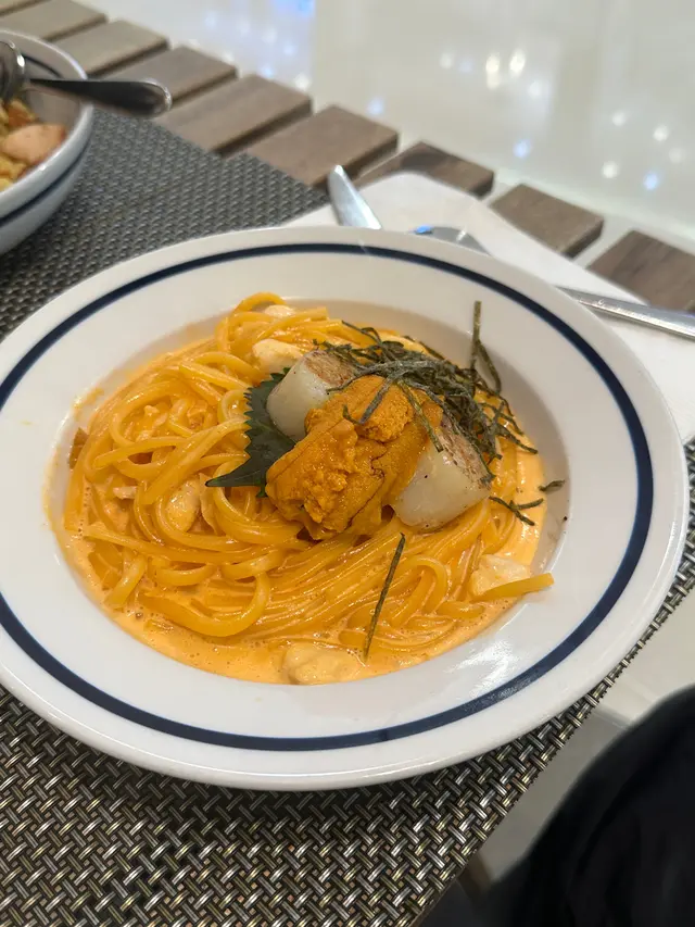 海膽忌廉汁濃郁滑順,帶有天然海味,與蟹肉的鮮甜互相襯托。香煎帶子外焦內嫩,口感一流。意粉煮得恰到好處,吸滿醬汁,每一口都像在海洋中漫遊。高級感十足,值得細細品味。