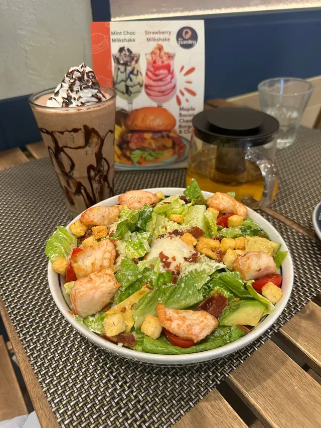 別以為沙律只是配角,這道沙律絕對能獨當一面。烤雞扒香氣十足,牛油果滑順,煙肉酥脆,溫泉蛋則為整體增添柔和口感。蛋黃沙律醬酸中帶甜,與羅馬生菜的清爽形成絕妙平衡。營養與美味兼備,是輕食愛好者的首選。