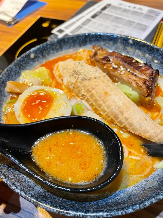 辣味湯底加雪糕可以中和返個辣味,加埋啲花生粒好似擔擔麵~另外雪糕筒浸咗湯之後,好似腐皮咁,感覺好有趣✨