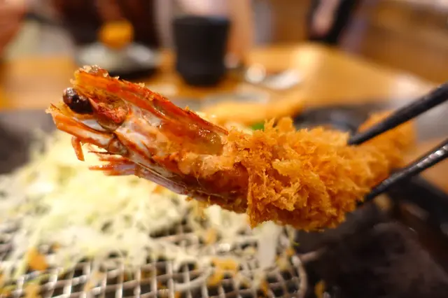 另附上生菜絲、茶碗蒸同味噌湯。店鋪標榜使用頂級綿實油,係百分百日本製造並無反式脂肪令每塊豬排,食落確實係香脆可口但不油膩,是吉列店成功的要素之一!大蝦確實夠大,係足足有八吋長既虎蝦,彈牙又鮮甜,食完真係會變大頭蝦
