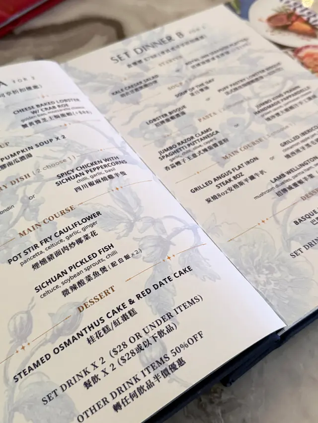 青花瓷中西融合菜式好有新意 arianaho369等级12025-10-27294 浏览 关注 🍽️青花瓷套餐晚餐A(2人):🌶️香辣炸雞刈包 - 西式調味中式做法,這個比較特別,半弧形的饅頭片夾着脆脆的炸雞塊,裏面還有沙拉小點綴,口感非常豐富(強推)👍🏻🐟鱈魚膠南瓜濃湯 - 甜甜的南瓜加膠原蛋白大大滿足🍖醬燒酸梅鴨 - 這個份量十足,每一塊鴨肉都裹滿酸甜醬汁超開胃🦆🔥煙燻豬面肉炒福花 - 煙燻香氣撲鼻的🐷豬面肉上菜的時候還在滋滋作響絕了🐟酸菜魚 - 新鮮的萵筍、脆爽的豆芽搭配嫩滑魚肉酸辣過癮🌸桂花糕 - 清香解膩完美收尾#香港美食 #FoodieLife #foodie $688以上食记乃用户个人意见 , 并不代表OpenRice之观点。赞好分享青花瓷中西融合菜式好有新意 ROYAL INN https://s.openrice.com/QrLT07VTU00检举 张贴 评分5味道5环境5服务5卫生5抵食用餐途径堂食