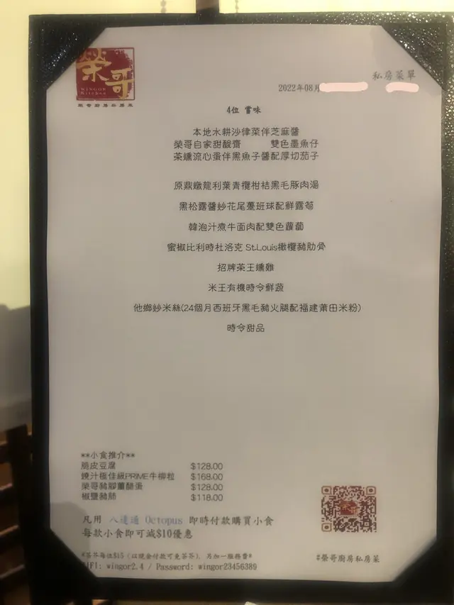 我們一早訂了4位,所以已經有我們專屬的菜單,