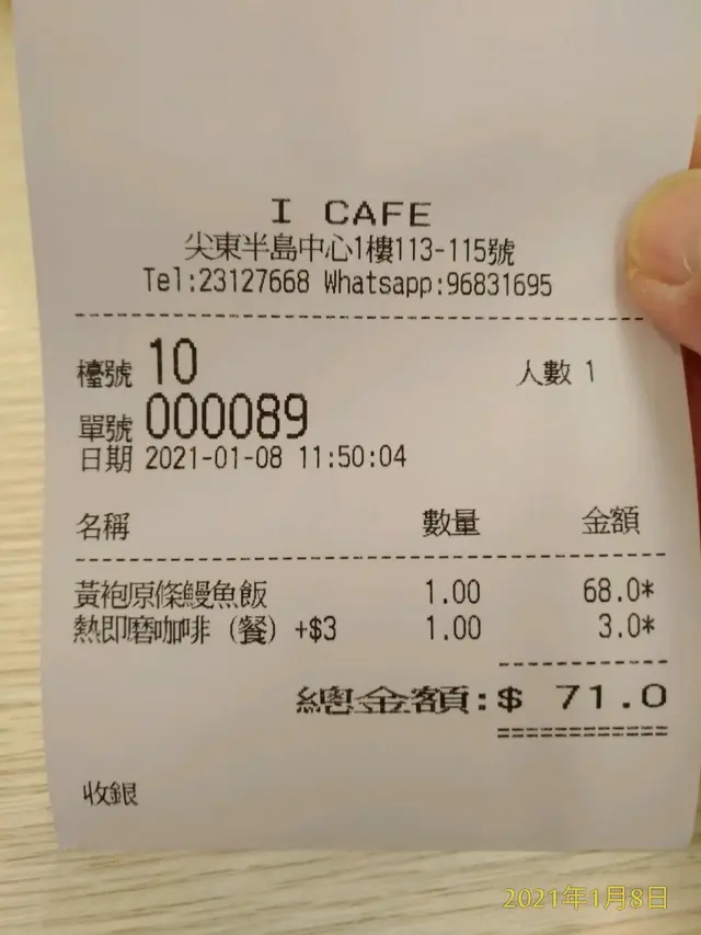 跟踪<开钣啦>做过的介绍~半岛中心1楼逛逛~见食肄都是茶餐厅格局,其中 I.Cafe 餐牌有~原条鳗鱼钣$68???价比同区日式快餐店~午间定食也吃不到~而且是切段非原条喔!再看走廊通道旁有座位,立马坐下,疫情下环境通风非常重要喔!