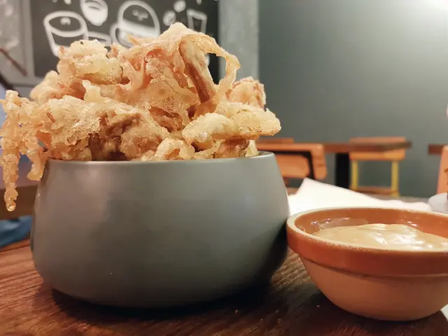 這個也很多人點啊,我們便也叫來嚐一下。很大的一碗,有金菇,雞脾菇和別的菇,炸的十分酥脆,椒鹽味很足。還配上了不知名的mustard醬(吃不出哦),點着吃很不錯。不過始終是油炸,我們也只有兩個人,吃到底部時有點膩膩的感覺。