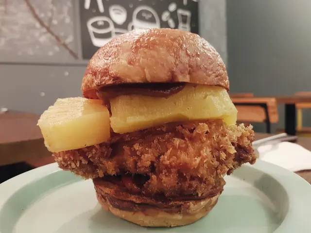 麵包脆脆的,塗上酸甜的醬,再夾着炸雞塊和菠蘿片。炸雞的炸粉不厚,外脆內嫩,吃着不油膩而且有肉汁,很喜歡。再說菠蘿片超級厚切,還是用新鮮菠蘿的,一口咬下去很juicy 。整個配搭起來簡直出奇地好吃,回頭率很高啊!