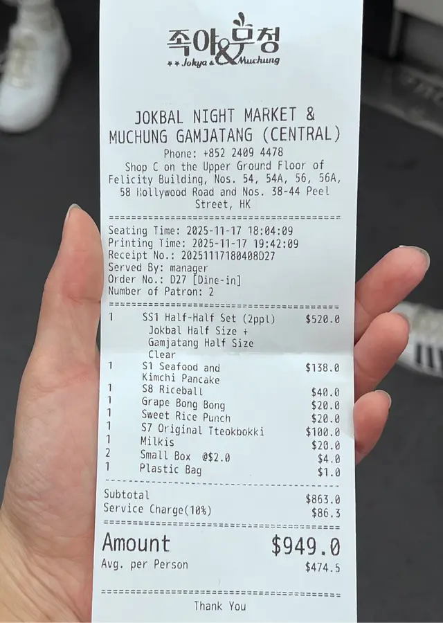 原味豬手 (半份)+ 薯仔脊骨湯(唔辣)$520