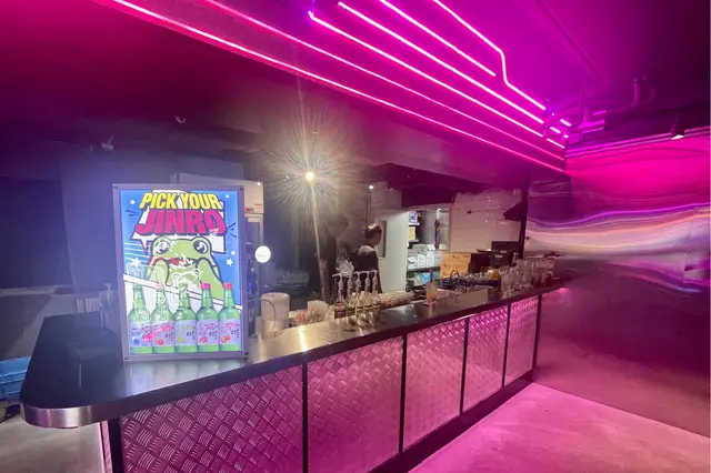 新店以韓式機舖為靈感,店內佈滿Y2K霓虹燈、Disco波波燈、跳舞機、籃球機等裝飾,除了炸雞、招牌炸豬腳、部隊鍋、黑松露芝士炸醬拉麵等傳統及創意韓國料理外,位於諾士佛臺附近當然亦少不了一系列酒類飲品,尤其是刨冰啤酒絕對不容錯過。