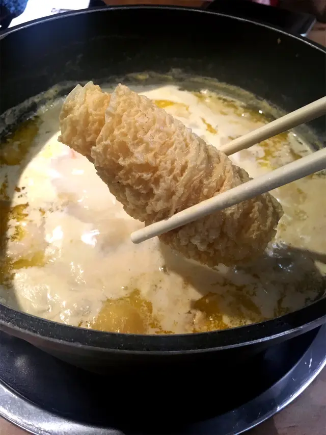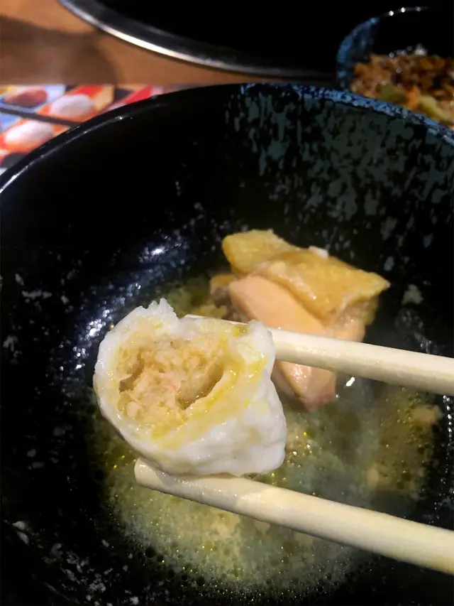 手打蟹粉墨魚丸新鮮彈牙,而個自創爆芝響鈴真係好正,大家一定要試下。個響鈴係即炸出黎,你落一落鍋拎上黎,芝士會晌個響玲入面流出黎,好香濃的芝士味,好特別好好味。