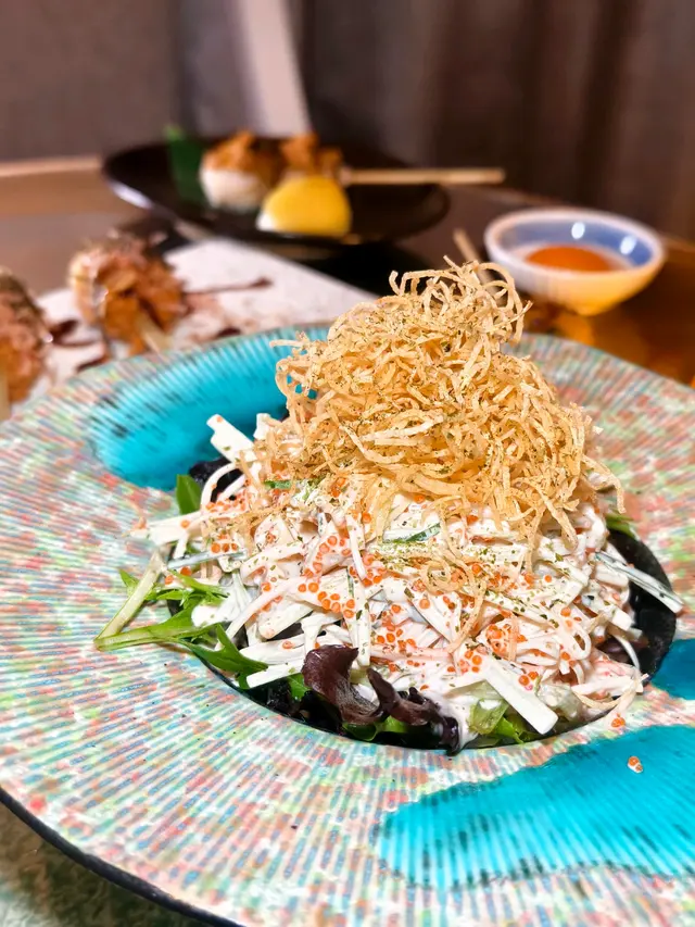 薯仔絲炸到脆脆哋,加埋清甜無花果同蟹柳,撈埋沙律醬好開胃!