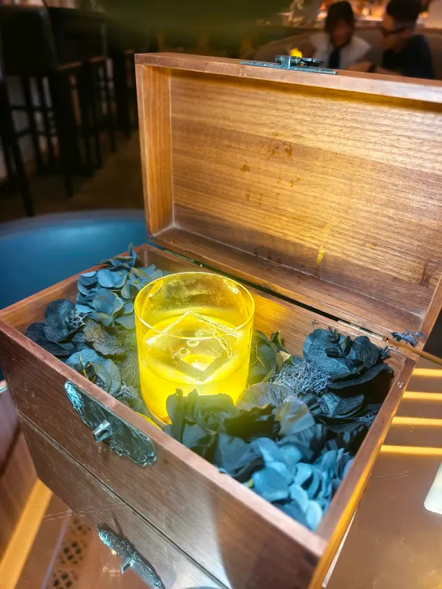 成杯酒放喺個木盒度送上枱,一打開有煙霧仲會發光,真係好似開寶箱咁,飲落甜甜哋又有少少酒香,好有feel~