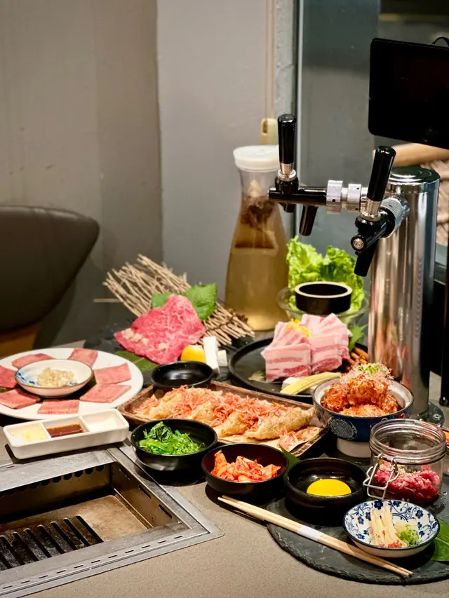 燒肉店空間都幾寬敞,一入去就見到大大幅著和服少女牆畫👘樓底夠高,感覺闊落😌而且採用無煙燒烤爐,抽風系統做得好好,食完唔會一陣味🌀