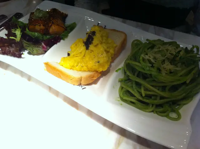 好戲在後頭,baby三食有一件沙文魚扒,半件egg toast,同一小碟菠菜noodle. 整體味道ok,但個noodle完全沒有味道,老婆最後食了一口就把noodle放回原位了。
