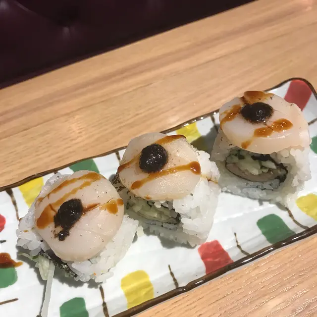 叫咗幾舊壽司,分別有黑松露鵝肝帆立貝卷又有三隻火鳥雞翼添