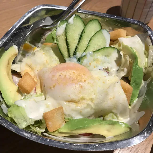 我地叫咗個溫泉玉子牛油果凱薩沙拉,溫泉蛋好正大大粒架,牛油果再加埋新鮮蔬菜,好開胃,夠曬清腸胃