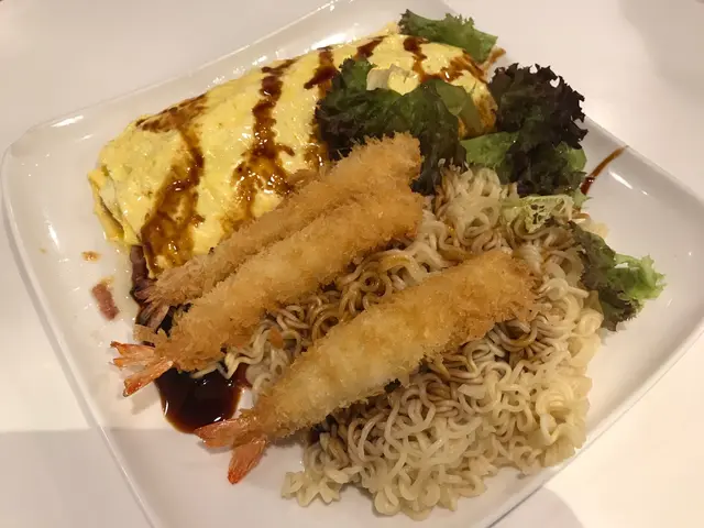 依味咸牛肉芝士玉子燒配炸蝦,我揀左配撈一丁好豐富