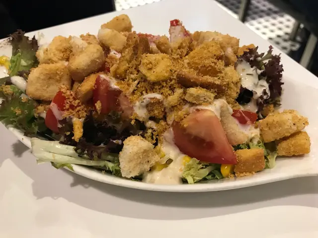 茶餐廳有得叫凱薩沙拉一於叫個試下,除左啲麵包粒腍左少少之外,其餘既都做得唔錯,兩個人share就不錯