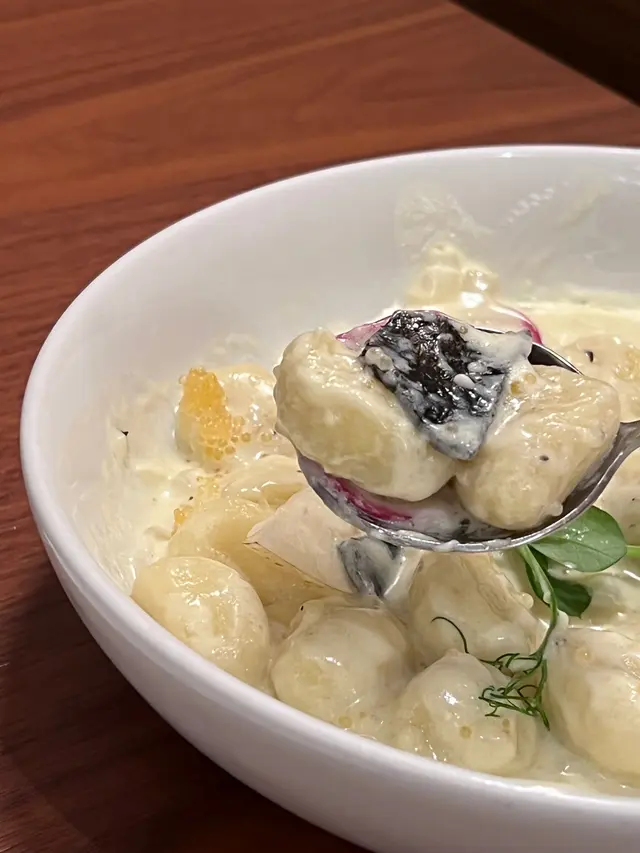 平時真係好少食到呢款pasta! 馬鈴薯丸子口感真係有幾分似薯仔😂烏魚子嘅鹹香味同奶油醬汁都幾夾~