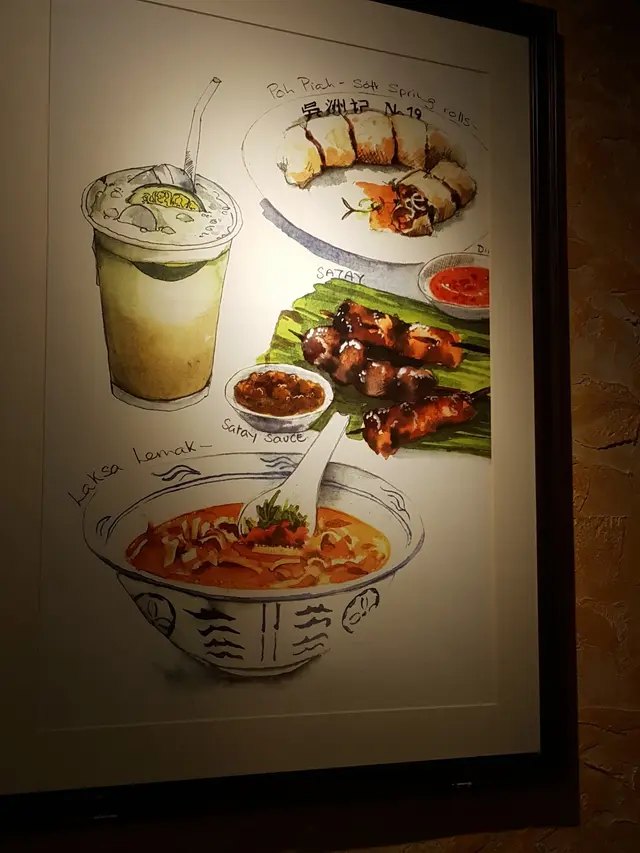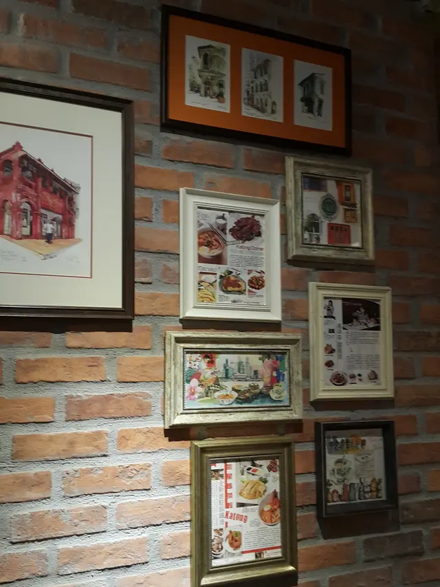 一踏出升降機,餐廳門外已經充滿了南洋的風情氣息,天花頂掛上吊風扇,紅色磚牆更掛上了不少雜誌訪問餐廳的掛畫、繪畫等.....