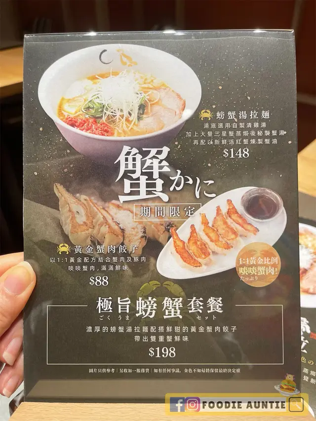 🦀️ 最新出品就係「螃蟹湯拉麵」同「黃金蟹肉餃子」,分開叫貴啲,梗係叫佢個「極旨螃蟹套餐」抵好多啦 😝 店員介紹話「螃蟹湯拉麵」嘅湯底係用自製嘅清雞湯,再加埋大量三星蟹蒸焗後秘製嘅蟹湯,再加新鮮活紅蟹煉製嘅蟹油,所以每一啖湯底都充滿蟹味,超鮮味呀 🤤