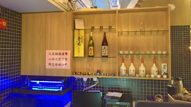 穿過玻璃門,立即可以感受到日式簡約裝潢的氣氛,門口位置只是簡簡單單地用上了淺色木櫃來放置了各式日本酒類與大吟嚷,立即令餐廳變得充滿著日本風格與氣派;