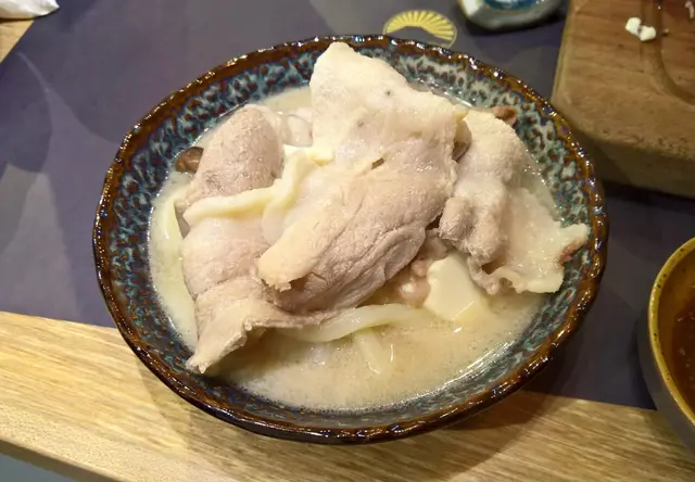 不過安格斯牛肉並非Step和娘子的最愛,反之有驚喜的卻是黑豚肉,黑豚肉在豬骨濃湯的灼燙下,入口時濃郁的豚肉味道隨之散發出來,加上肉汁同樣有著香濃的味道,令口腔充滿著豐腴的豚肉味盤旋著;黑豚肉朋友灼得恰到好處,肉質同埋煙韌嫩滑,脂肪Q彈好咬好,咀嚼時同樣有著香濃的豚肉味道,吃後總是令人回味?!Step和娘子覺得這個豬骨濃湯和黑豚肉有著加乘的效果,令黑豚肉更為美味…
