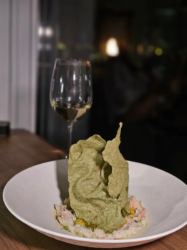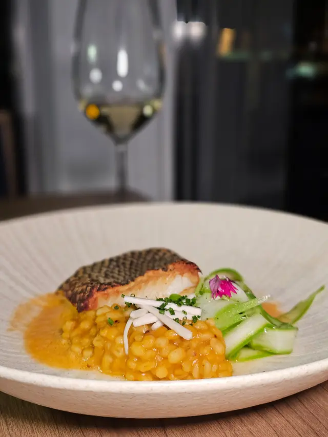 第二道主菜是深海白鱈魚,魚皮煎得香脆,魚肉嫩滑多汁,搭配日本南瓜、意米、蘆筍及紅甜椒帕爾馬火腿泡沫,口感層次豐富。特別喜歡醬汁煮過的意米,帶有微微甜味。