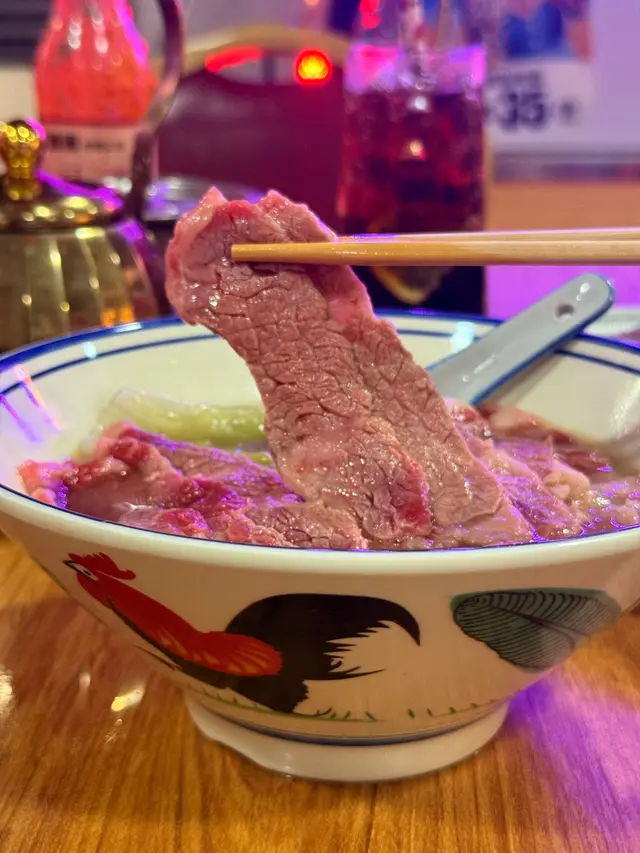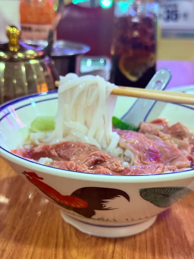 牛肉可以選擇生上或熟上,我選擇了生上,配上熱騰騰的牛骨湯,自己淋湯入河粉的過程既有趣又讓牛肉保持最佳熟度,吊龍入口嫩滑,肉香四溢,令人回味,牛骨湯亦都很濃郁香甜。
