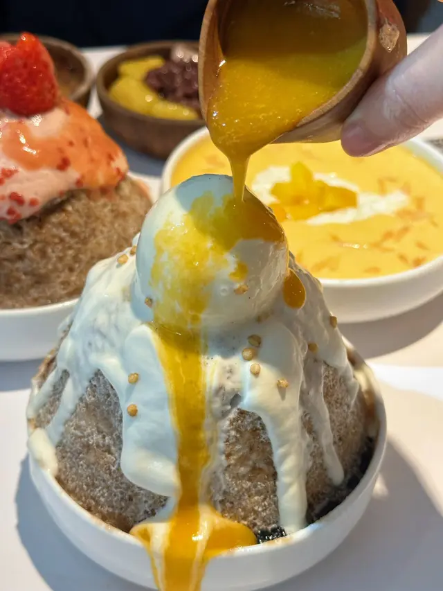 雪花冰是仙草刨成的,会拉丝呢!!