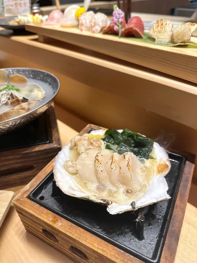 刺身方面叫咗中拖羅、活北寄貝以及油甘魚腩🐟三款都好出色!中拖羅同油甘魚腩同樣入口即溶,魚油甘香👅活北寄貝刺身有驚喜!除左鮮甜既味道之外,吃起來脆卜卜係食得出嘅新鮮感!