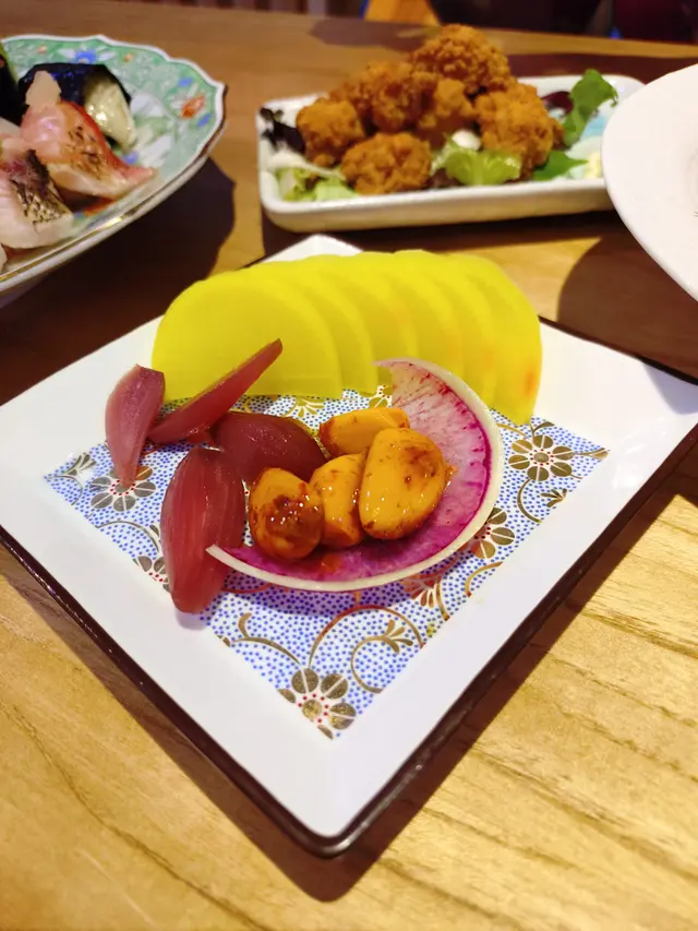 頭盤嚟過鏗魚沙律同埋漬物三點,幫自己醒醒位。鏗魚沙律好好味,唔腥易入口。