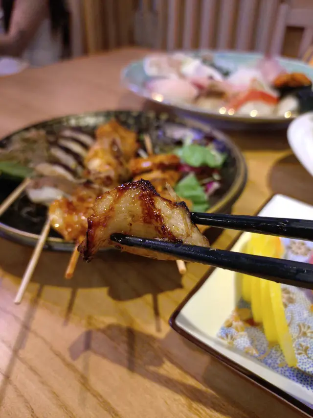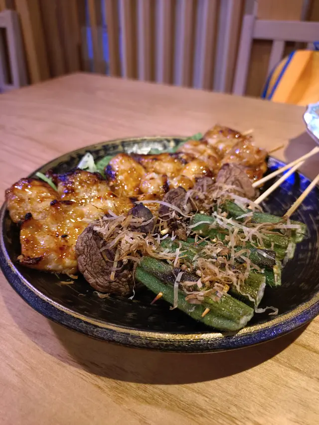 再黎係雞軟骨同燒物,雞軟骨每粒都好鬆脆,食到停唔到口。而燒物就有雞肉同豬頸肉,每串都香噴噴;同埋仲有秋葵同冬菇,可以幫助下消化。