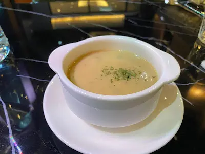 當日來,簡單地點上他們的 set lunch。忌廉蘑菇湯,是一碗濃濃香香兼帶有菇粒的妙品。奶油味重,粒粒蘑菇令到飲起來又充滿了咀嚼感,而因為個湯夠 creamy,入口非常之滑。