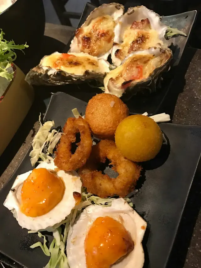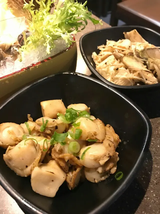 燒物方面,餐廳有燒蠔及明太子燒元貝,這些都不是常見的食物。燒蠔的蠔肉比較小,反而醬汁比較美味。燒元貝的味道也得特別,其他燒物也很不錯。